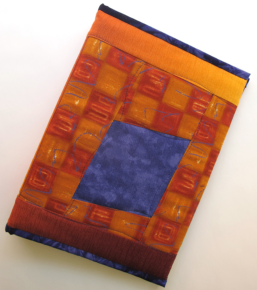 Violet/Orange Art Journal One in a series of 5.5×8.5 three-ring binders that I covered with quilted fabric.